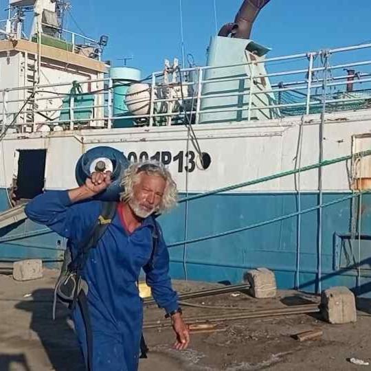 Diego, going out to look for gas through Djibouti- He also had to load 300 liters of water, and diesel, from the port to the dinghy, row from the dinghy to the boat and then take it on board-