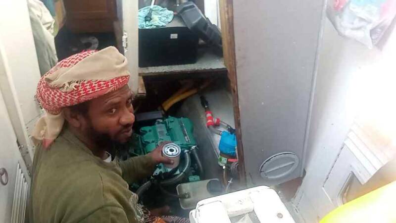 Socotra, four days, almost no sleep, a meter and a half of waves every 5 seconds, the impossibility of going ashore, the pressure of the police to leave, the engine that won't start, the house upside down with the smell of diesel , the children who are fed up with all that. On the third day at night the agent told me that the police were pressing too much, that they were going to withhold our passports. I asked him to come at dawn with a diesel engine mechanic, that we would have the deposit clean so he could work faster. We went to bed with Diego at midnight, both unable to sleep, and at 3am we got up to clean the deposit. It was the first time we disassembled all that, and we worked very slowly. When the Mechanic arrived, the tank was still not full clean. He took out the filters and put them back, saying that perhaps they were misplaced. And to check if the engine worked, he put the two pipes, the one that sucks the diesel and the one for forwarding, in a can of clean diesel. The engine started, the man assured that there was no problem, and he left. Diego continued cleaning the deposit while I loaded water and prepared the boat.