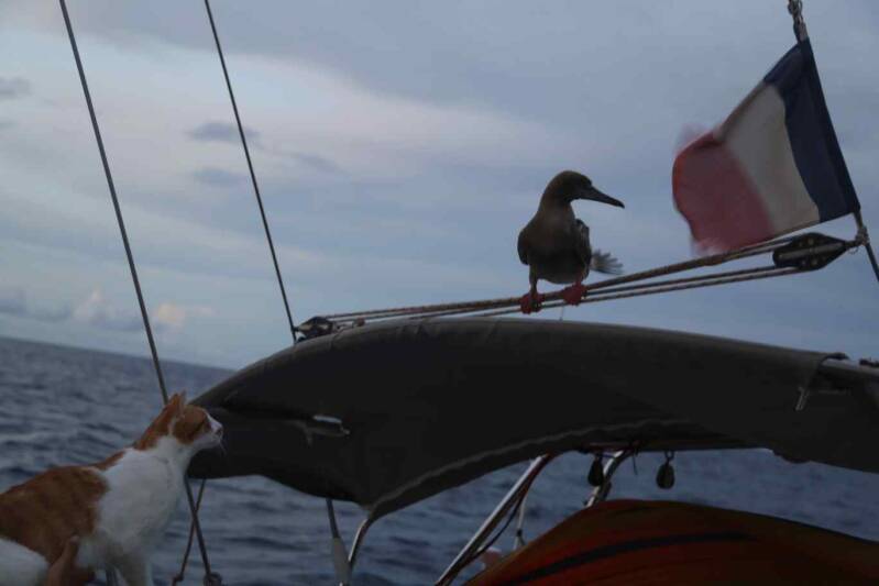 Pájaros grandotes buscaban el barco para descansar- Lo bueno de que sean grandes es que el gato no los podía comer, lo malo es que nos rompieron la veleta y ensuciaron los paneles solares...