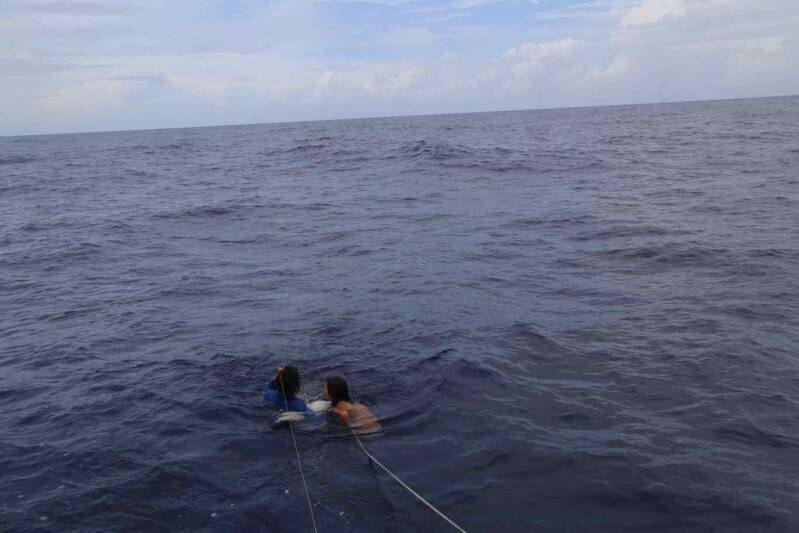 Por la mañana, Oiuna y yo nos vamos a dar la vuelta a la isla- Casi no desayunamos, ansiosas de ir a recorrer, ponemos algunos objetos en nuestros bolsos estancos y nos tiramos al agua- Alcanzamos la isla nadando, ya que contrariamente a St Joseph las aguas tiene unos metros de profundidad hasta muy cerca de la costa-