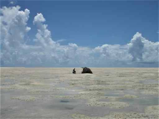 St Francois no era como parecía de lejos- Nos fuimos adentrando en su mundo de marea baja, descubriendo espacios que eran ocupados por el mar, vacíos y húmedos, inmensos, grandes bandadas de aves, bosques densos- La marea era tan baja que nos parecía, de un lado de la isla , vislumbrar tierra a perdida de vista, y un resto de naufragio volvía al paisaje aun mas irreal-