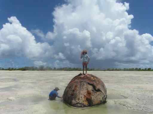 Caminamos a un lugar de la isla que solo se podía alcanzar en ese momento de la marea, y que tenía muchos árboles de cocos, los chicos tenían sed- Mientras bebíamos el agua fresca y perfumada de los cocos, vimos pasar sobre nuestro velerito varios chubascos- También se acercó uno del sur hacia nosotros, y nos cubrió totalmente durante varios minutos- EL paisaje era otro, con la arena levantada por el viento, los arboles inclinados, la lluvia espesa que refrescaba de repente todo el paisaje y lo ensombrecía también- Nos dimos cuenta que subía la marea y nos apuramos en cruzar, sintiendo la fuerza de la marea entrante- Una vez que alcanzamos el barco, volví a observar esa isla- Lo que veía de ella era ahora tan distinto, y sabía que en cada excursión que hagamos hacia ella algo nuevo descubriría-