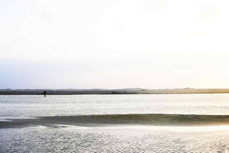 Nos fuimos metiendo entre islotes, siempre alguien a proa observando, además del gps- El paso era angosto y poco profundo- Pronto, ya no se sintió la influencia del mar, no había más olas- Los camellos, indiferentes, nos miraban pasar sobre orillas improbables- Tiramos el ancla, al reparo de todo, fascinados por el espectáculo que se ofrecía a nosotros- Era el de dos inmensidades que se encuentran- El aire habitado del silencio del desierto se expandía sobre la soledad del mar- Era una brisa distinta- Venía cargada del movimiento lento de las dunas, y del sol implacable- Este paisaje nunca había sido imaginado por mí- Nunca pensado- Las dunas lentas, el estremecimiento de la arena, a perdida de vista, sobre el mar- Las dunas del Sahara sembradas de conchas gigantes que contenían el canto del mar- Los niños se alejaron sobre el dinghy, para volver unas horas después con brillos en los ojos y tesoros en las manos- Mientras, en las aguas turbias, Diego rascaba el casco para liberarlo de todas las algas y moluscos-